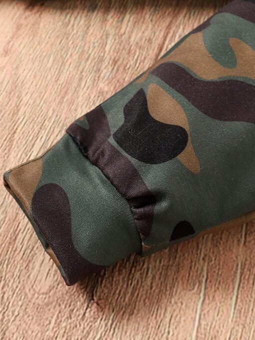 طقم بنطال وبلوزة رياضية رقبة طاقم ملائمة متعددة الألوان بطبعة تمويهية للأطفال الصبية 2 قطعة، خريف وشتاء