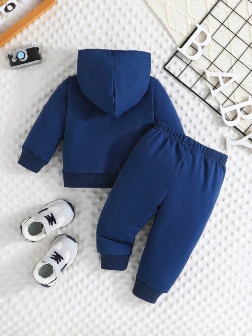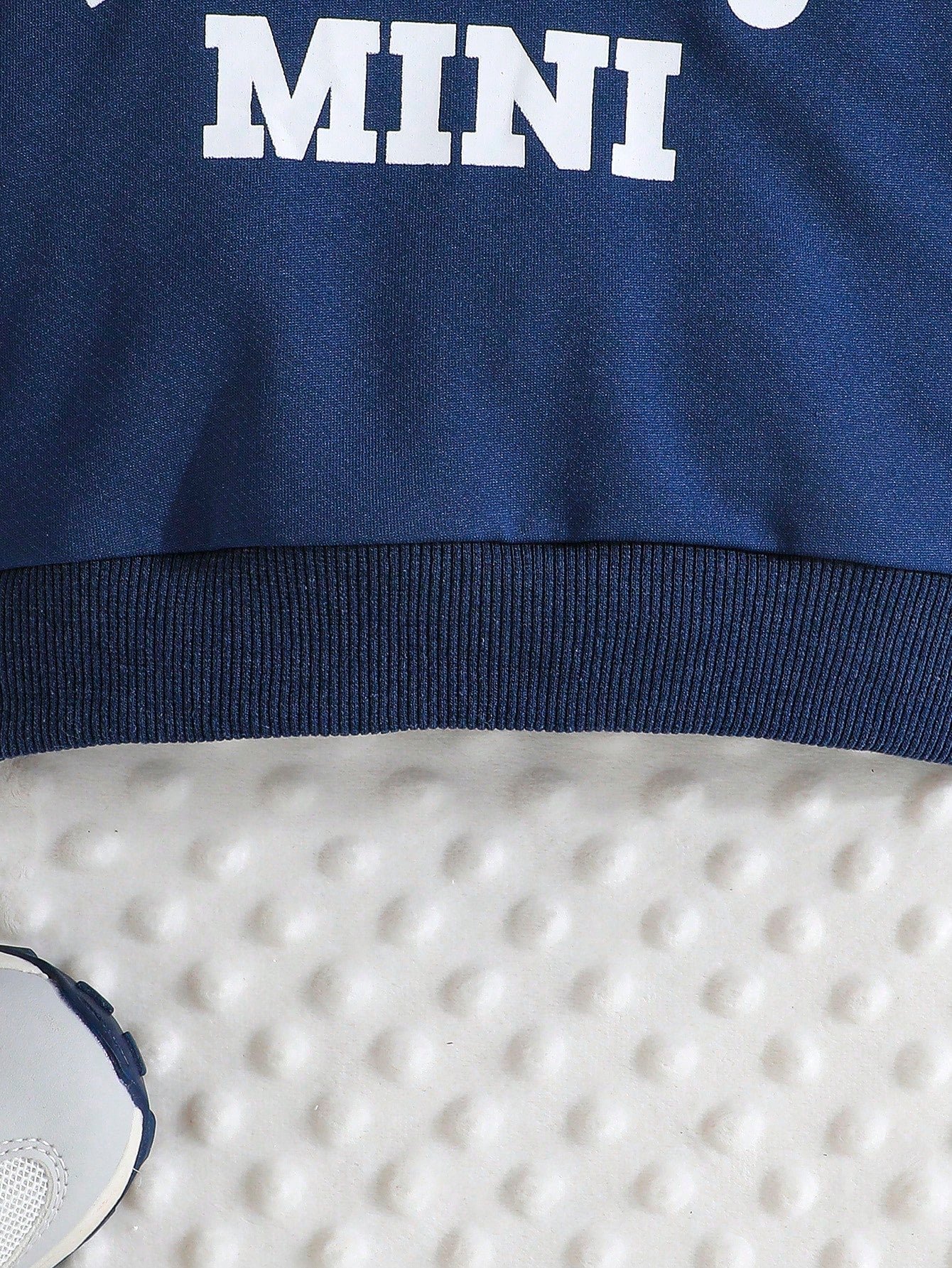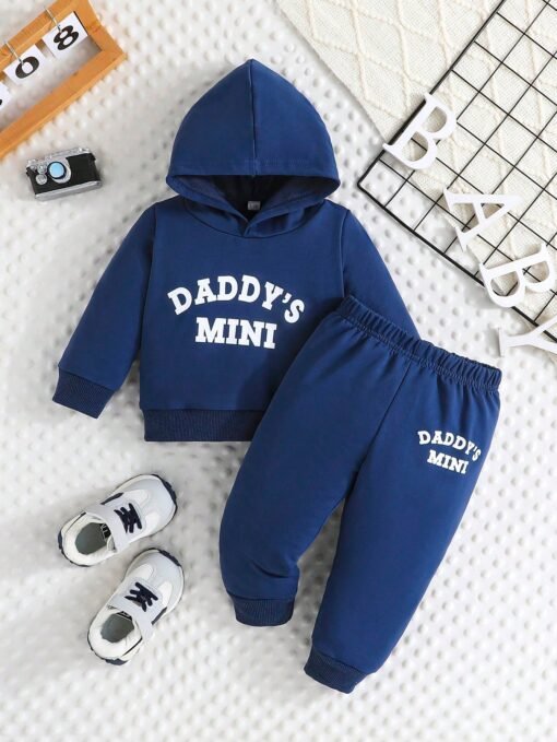 طقم بنطال وكنزة بقلنسوة مطبوع عليها حروف للأطفال الصبية الأنيقة، للرياضة الخارجية، خريفي، قطعتان/مجموعة