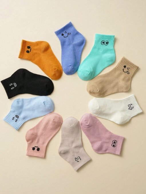 10 أزواج / حزمة من جوارب الأطفال والرضع مع طباعة تعبيرات لطيفة ومرحة بألوان عشوائية