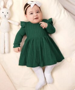 SHEIN فستان جمبسوت كاجوال بسيط ورائع للفتيات حديثي الولادة بلون سادة وأكمام طويلة
